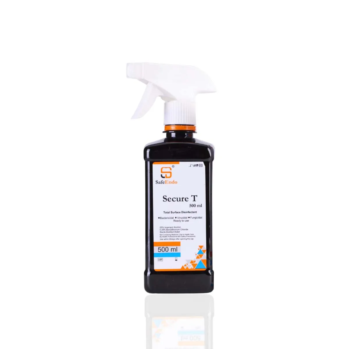 • Secure T is a multipurpose disinfectant/decontaminant cleaner for use on Hard, Nonporus, Intimate surface, Hospital furniture, Isolation areas, Instruments (noncorosive), Surgical operatory, Dental operatory, Incubators, Exterior surface of Dental Curing Light and Ultrasonic Scaler, Intraoral Camera, Exterior Surface of Radiographic Sensor, Glass surfaces, in Ultrasonic Cleaner as Pre Cleaning Procedure.