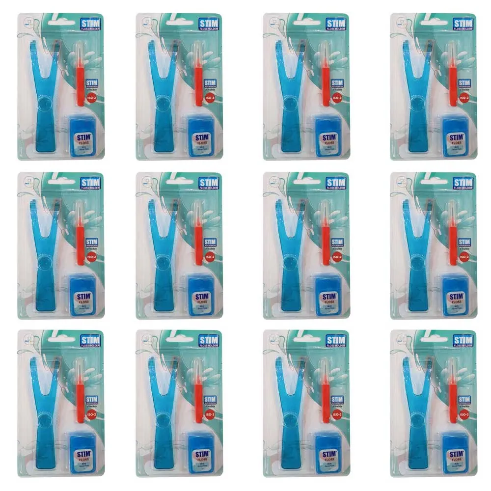 • Pack Of 12 (Floss Holder – 1 piece + STIM Floss 5 meter + Interdental Brush – 1 piece)